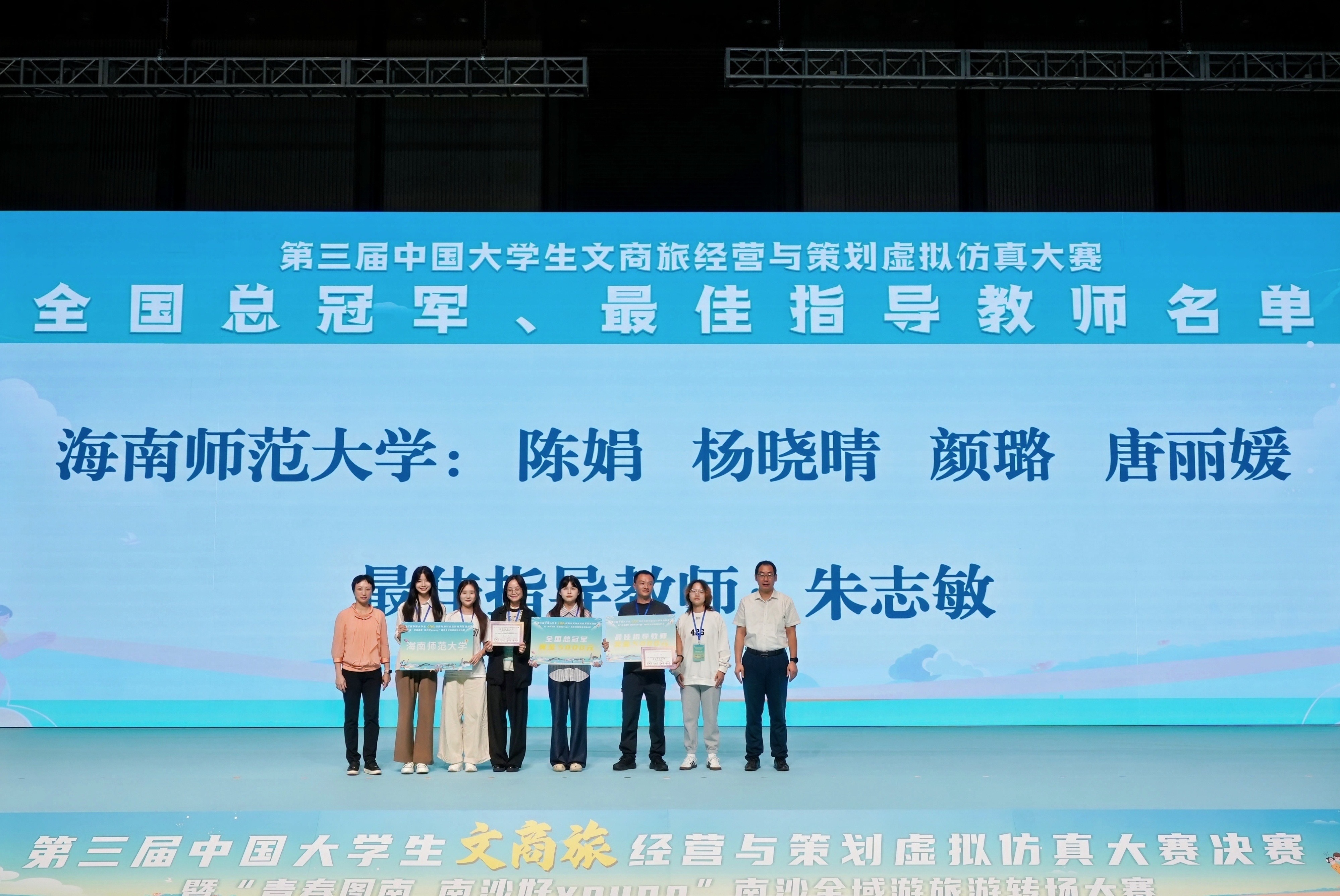 最终,由海南师范大学朱志敏老师指导,陈娟、杨晓晴、颜璐、唐丽媛同学组成的团队凭借优异表现,以总分第一的成绩摘得桂冠,荣获第三届中国大学生文商旅经营与策划虚拟仿真大赛全国总冠军。同时,赛事还颁发十大镇街文商旅策划奖、虎门渡口项目策划奖及庆盛安置区项目策划奖。